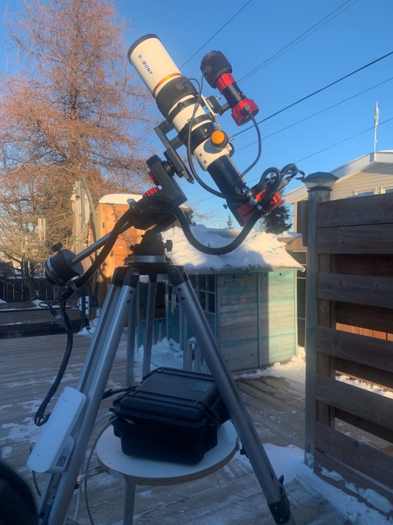 The scope is an SVBony 70mm F6 Telescope with 2″ focuser, perfect for my ZWO 183 camera. I choose the 70mm model over the 80mm simply because of weight. ED70 is 2.2Kg whereas ED80 is 3.3Kg & with my camera & accessories would put the mount over it’s weight limit & I’m pushing that now. For the price, this little scope was a pleasant surprise upon first impressions.