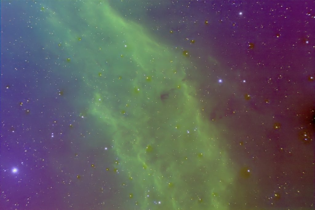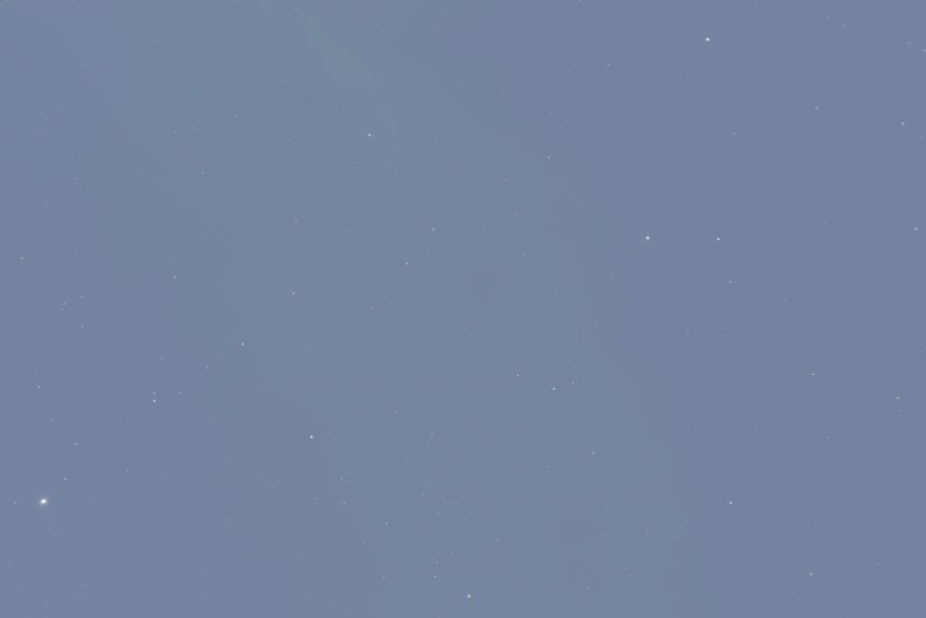 I intended my first narrowband image to be of M42, Orion Nebula and after aligning the scope, I had almost 3 hours before Orion was high enough to start imaging. After aligning, the scope was very close to SH2-220 nebula so I slewed to it, more just to have something to center on, and setup the scheduler to take 300 second SHO images until Orion was up enough. The scope slewed to M42, aligned, started guiding & then taking 300s images of M42, all without a hitch. The next day, all the images of M42 were process, with great success!! I then decided to see if anything came from the Sh2-220 images, so I stacked all 33 of the images (without reviewing any) and what I ended up was the image above which was extremely disappointing. Normally at this point in the processing, at least a slight outline will be visible, but I could see nothing there.
